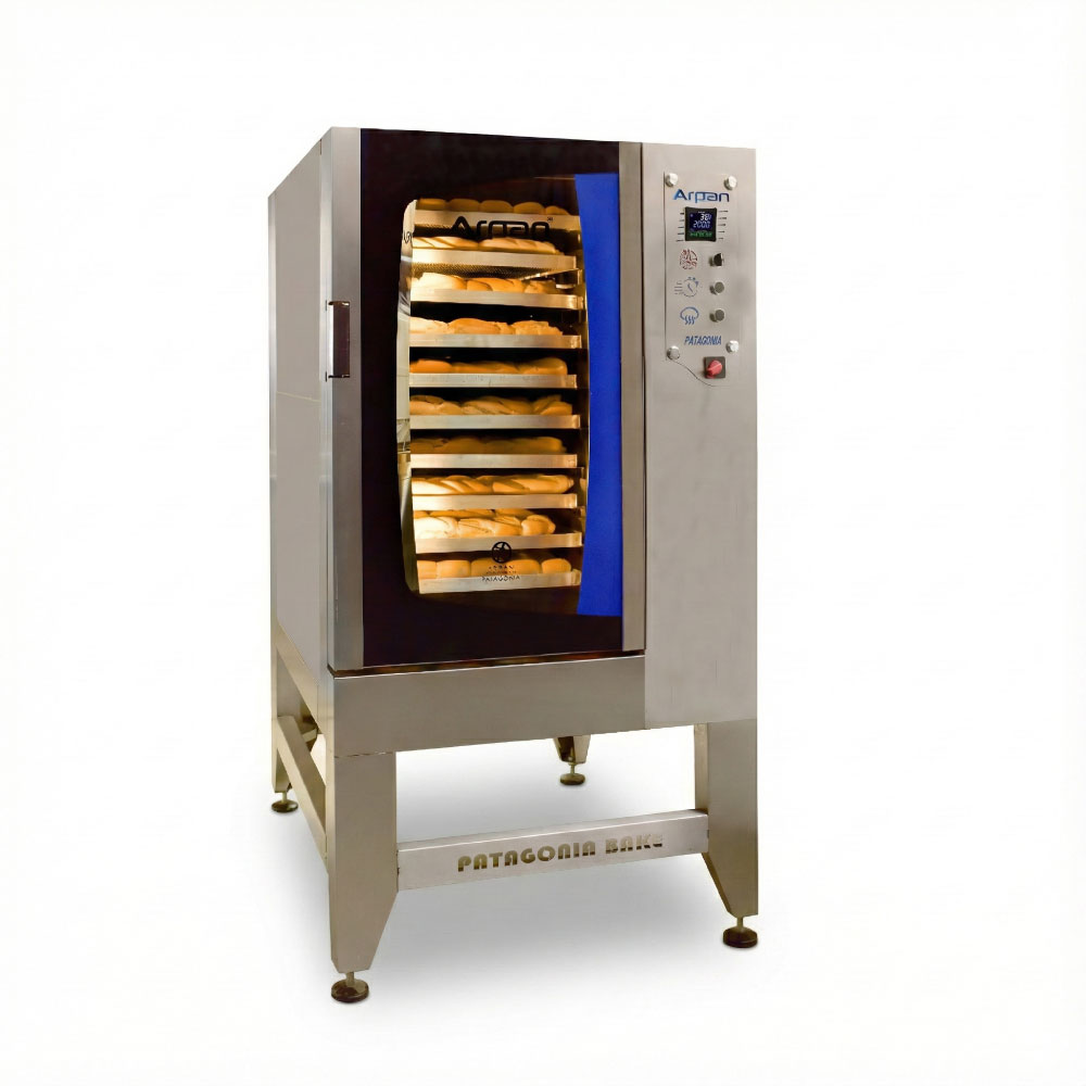 Horno convector Patagonia Bake 10B: tecnología de horneado uniforme con construcción íntegra en acero inoxidable 304 y turbina de circulación controlada. Equipado con vidriera Hot Glass para visualización sin abrir puerta. Capacidad de 10 bandejas simultáneas. Disponible en opción monofásica (3 kW) o trifásica (15 kW). Ideal para panaderías artesanales, emprendimientos pequeños y negocios de hostelería que requieren horneado consistente y confiable. Más de 50 años de innovación ARPAN respaldando cada equipo. Garantía 24 meses + soporte técnico certificado.